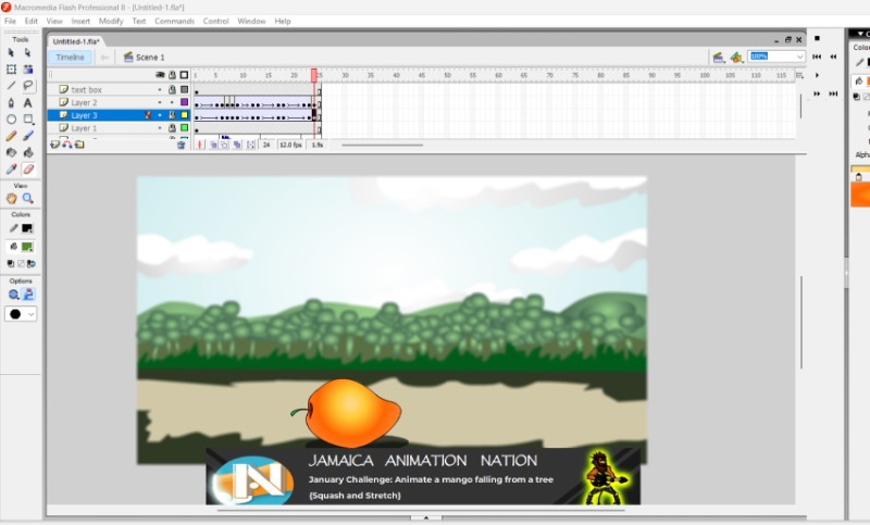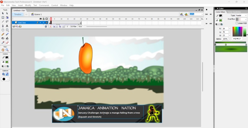 Animating a mango dropping from a tree was fun. First, I drew the main poses of the mango on the tree, falling, hitting the ground, and bouncing. Then, I outlined the drawings to make them neat and added colors to make it look lively. Even though I had to work quickly, I enjoyed learning how these steps brought the animation to life